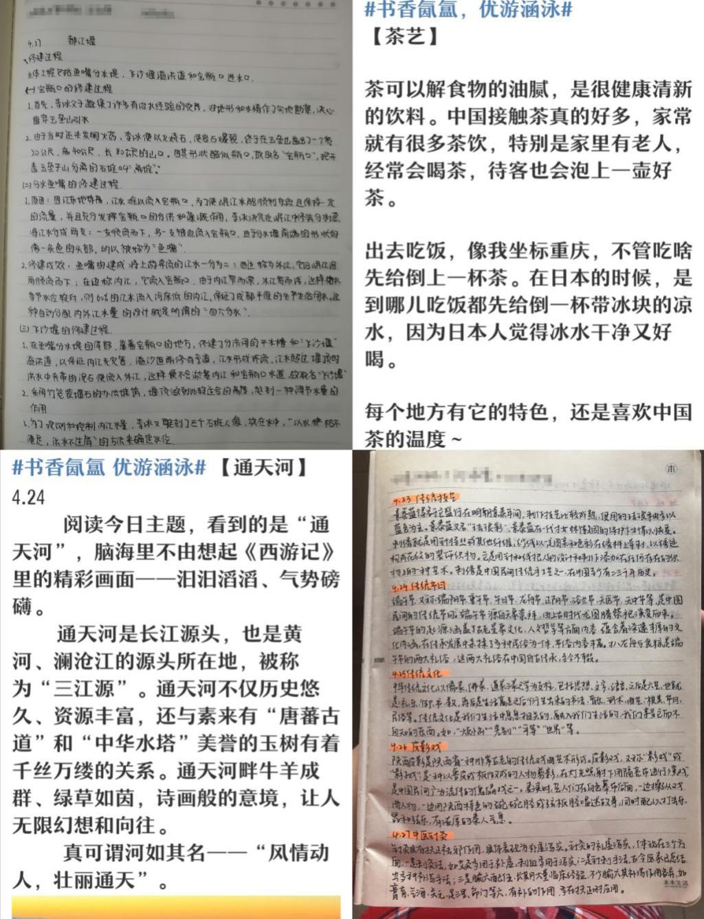 活动形式二:为了让学生全面了解、拓展思维,除阅读推文外,学生可围绕当日主题,自行额外搜集其他相关资料。通过对额外资料的学习,学生最终进行总结摘抄,以此来丰富学生的知识量,达到融会贯通,灵活运用。