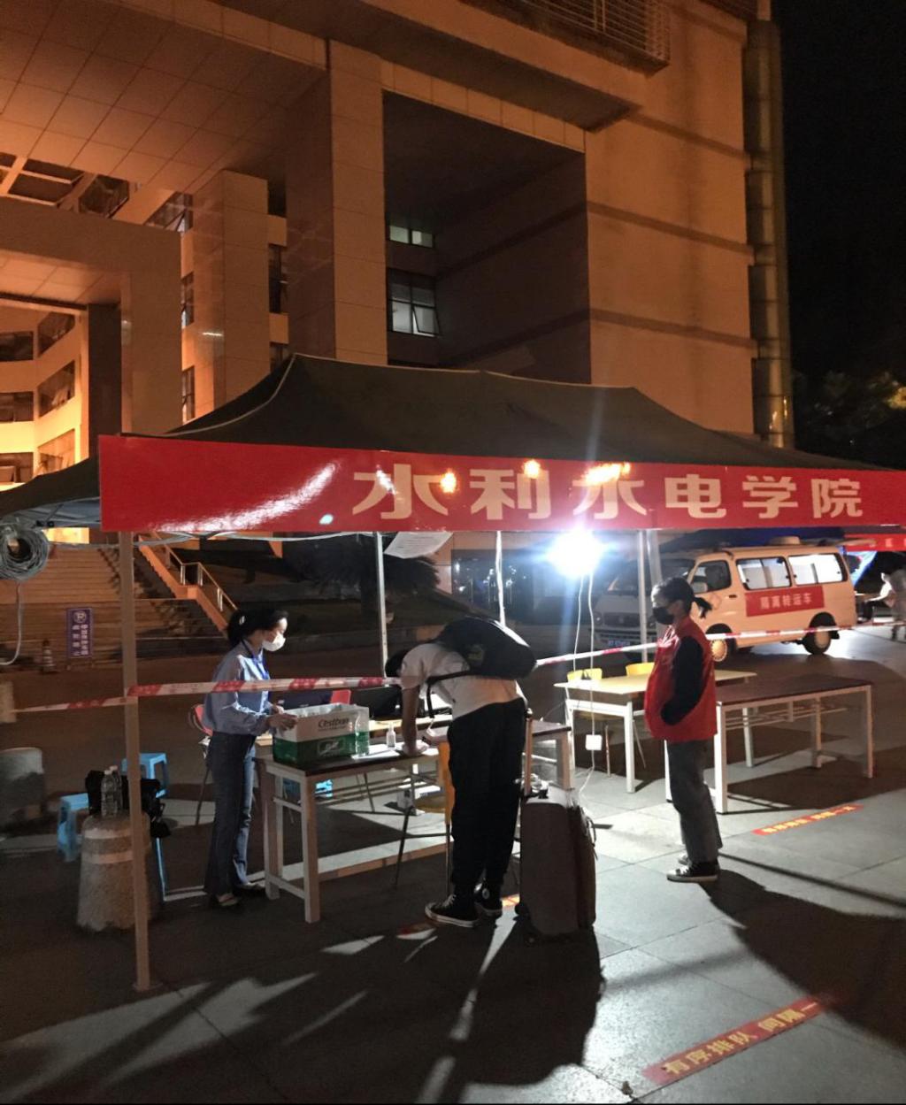 报道现场,同学们认真配合学院老师返校码检查,自觉测温、间隔排队。同时在志愿者的帮助下,逐一填写返校相关资料,以便于返校后教学生活管理,整个报到现场井然有序。来自辽宁大连的2017级返校学生王继峰是返校第一日我院迎来的最后一位报到学子,看到灯光照亮下熟悉的校园和亲切的老师后,他激动地说道“这次返校一套流程走下来,说实话我是很紧张的,不过紧张归根到底是因为我们川农大严谨可靠的返校安排,从中也能感受到学校和学院对返校同学的重视,给了我返校后能够安心于学习生活的信心”。来自水利水电工程专业的2019级返校学生何鑫梁说道:“从校门到寝室,学校的每一步返校检查都做到了严格细致,志愿者们也很热心的帮忙搬行李。学校还贴心地给每个寝室准备了温度计,酒精等药品和用具,我感受到了学校对我们生命安全很重视,也为迎接更多的同学返校做足了准备,我期待着宁静的校园再次恢复了往日的生机与活力。”