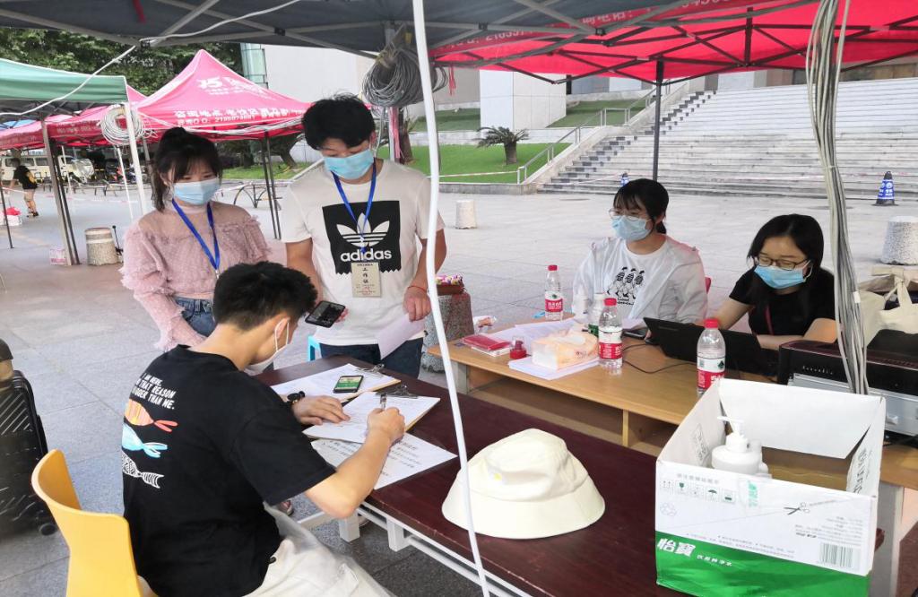 学院辅导员老师们也没闲着,团队协作,分工明确,有条不紊地为同学们返校复课积极筹备着。胡敏伦老师仿佛变身24小时答疑解惑专家,数不尽的qq群,铺天盖地的qq消息,打不完的咨询答疑电话,他不辞辛劳地主动搭建起了一座学院同学班主任们与学校之间的顺畅沟通“桥梁”,学校通知信息第一时间有,“疑难杂症”第一时间答;杨丽萍老师则顶着三十度的高温,大中午的奔波于各大药店超市为学院添置物资,贴心地去到饭店为学院老师、志愿者们提前订餐,分组分时段为学院精心排了志愿者服务表;而罗老师和吴老师则充分担当起了后备军的角色,当好返校复课工作万能小助手的同时,积极帮忙分担近期学院的其他日常事务。热心的志愿者同学们今天也陆续返回,在保障自身安全的前提下,为学院的返校同学们耐心讲解、悉心服务,一个个可爱有担当的“小红背心”构成了校园里最靓丽的风景线。