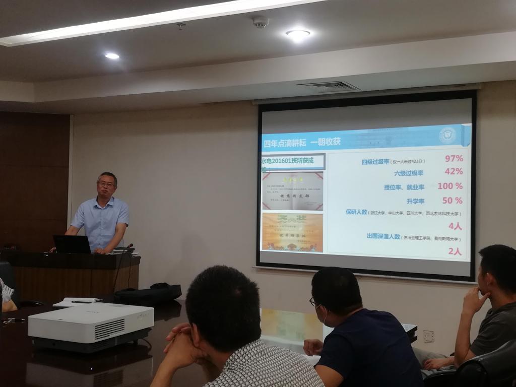 接下来,升学率居全院首位的农业水利工程系系主任张志亮代表系上做了交流,他根据考研情况、考研人数、目标高校分布,一一介绍了系上工作的五大措施,还分析了工作中的不足和问题。