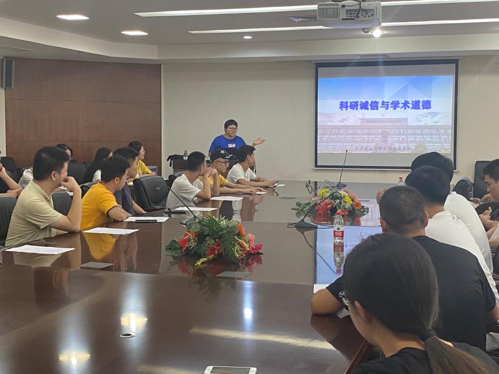 梁心蓝博士给大家做《科研诚信与学术道德》报告,结合具体实例,详细介绍了科研诚信和学术道德的概念,强调了学术不端的后果,要求在座研究生遵纪守法,恪守学术道德准则,努力提高自己的科研水平。最后,陈小容老师就研究生管理办法、培养方案等文件从课程管理、中期考核、开题报告,奖励细则等方面给大家做了讲解。