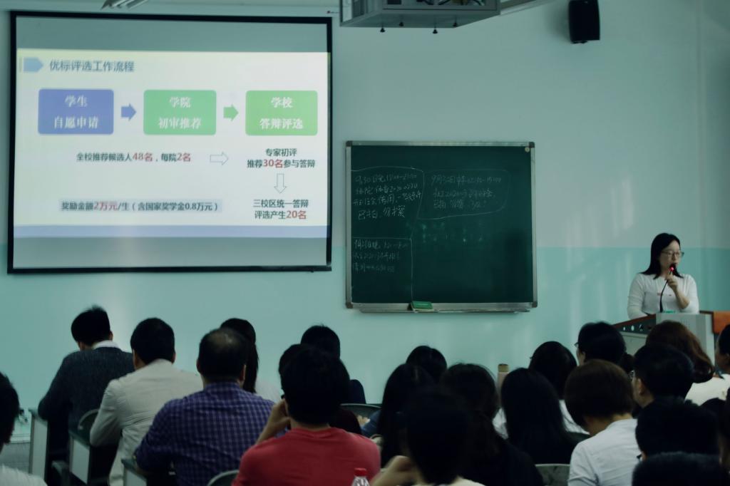 杨丽萍首先就学生评优评奖相关政策及要求进行初步解读,并对特殊政策进行相关举例加以深度解读,同时指出重点及今年的新变动。值得注意的是,今年“优秀共青团干部”、“优秀共青团员”可与“优秀学生”、“优秀学生干部”兼得,还新增设了优秀学生奖学金。此外,杨丽萍还对评优评奖所涉及的综合学业排名位点的具体计算方法进行了详细说明。