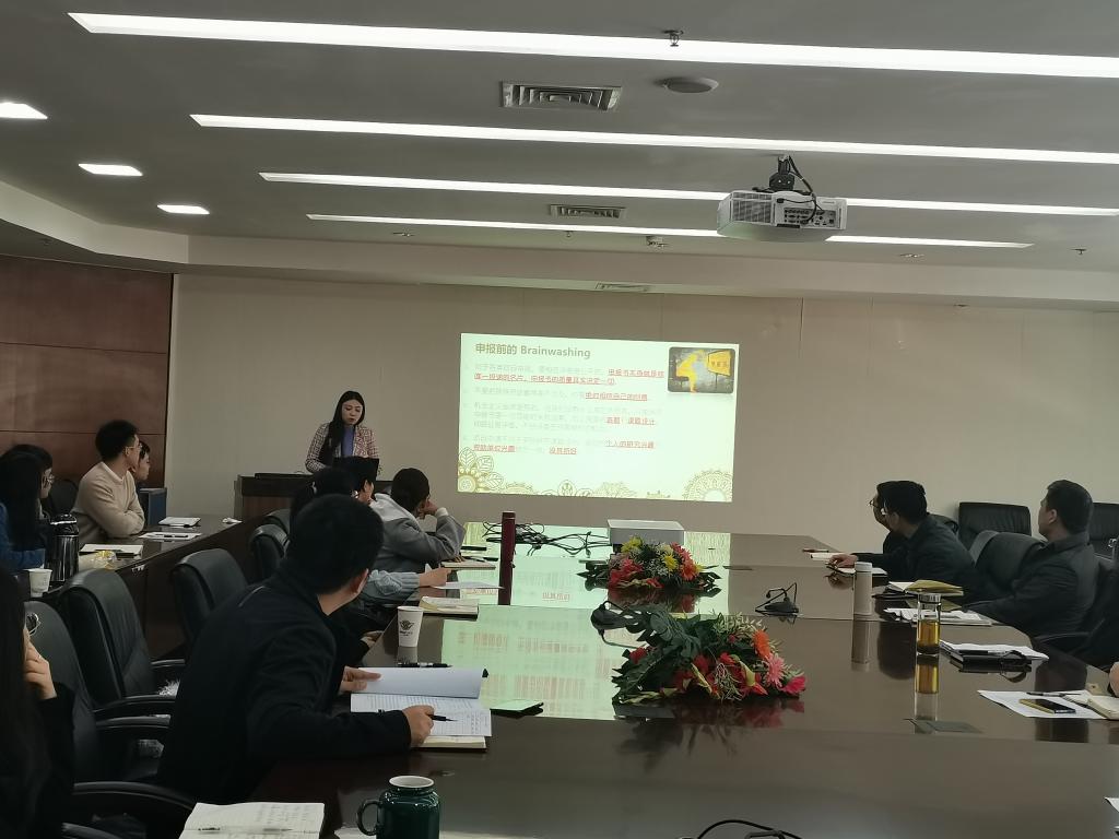 随后,王莹和刘建平两名博士分享了他们的成功申报项目的经验。王莹认为申报书本身是唯一投递的名片,其质量决定着一切,要绝对相信自己的创意,将个人的研究兴趣和资助单位兴趣结合在一起,并以高度凝练、恰到好处的四字成语对选题的创新性、谋篇布局的合理性等方面进行了阐述。刘建平分析对比了近几年各个学部面上项目和青年项目的获批率、资助情况及评审流程的变化,并结合学院实际,提出了很好的申请策略。