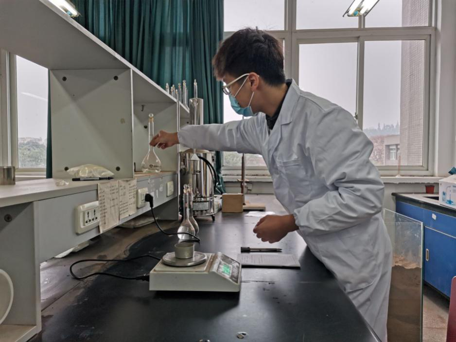 自开始接触科研起,韩豪杰就像如鱼得水,沉醉其中,并在寒暑假期间选择了留校,白天试验室开展试验,晚上整理数据,查阅文献。团队一个大组的试验往往长达10多个小时,而像这样的实验做了30多组,测量、对比了1000多组数据。寒假做试验的经历让韩豪杰印象尤为深刻,“当时温度很低,我们团队需到三区农场取土,再将其运回四教试验室,之后把土进行风干并最终过筛为小颗粒。正式试验阶段,从早上8点开始,到晚上10点结束,期间只能轮流去吃饭。读取数据时,每一组都需两人同时观察,以防误差,在实验台前不敢有一丝怠慢。”艰苦的环境,让他在科研中得到磨砺。