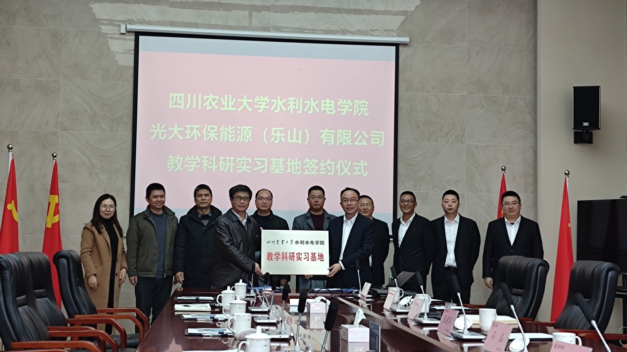 在乐山市环卫局张建华局长、光大环保能源(乐山)有限公司袁泉总经理及其他领导的陪同下,李天院长一行参观了城市生活垃圾焚烧发电厂和厨餐垃圾处理厂。双方在座谈会上对关于如何加强校企(地)合作,实习基地建设,学生就业实习等方面进行了深入交流,并签署实习基地建设合作协议,举行了基地授牌仪式。