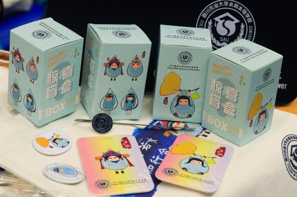 学院迎新报到处的那抹淡蓝,使得现场处处洋溢着青春的气息,可现场最热闹的莫过于盲盒抽奖活动,今年学院为新生准备的礼物一改往年惯例,以盲盒抽奖的形式进行,增加了趣味性和神秘性,亦使大家热情高涨。只见报到的“小水滴”们个个满怀期待地抽盲盒,摇一摇、听一听、开一开…开出各种限量定制款的“水院精彩”:印着学院吉祥物四款水滴人偶的定制帆布袋、可爱卡套、创意胸针,盖着水院院徽的精美书签…据说,还有最激动人心的“隐藏款”!