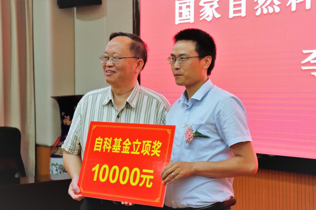 学校党委副书记张强教授为国家自然科学基金青年基金获得者李登松颁奖