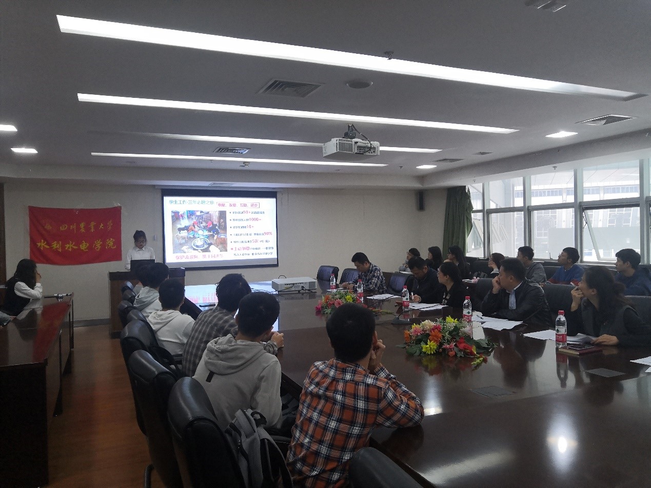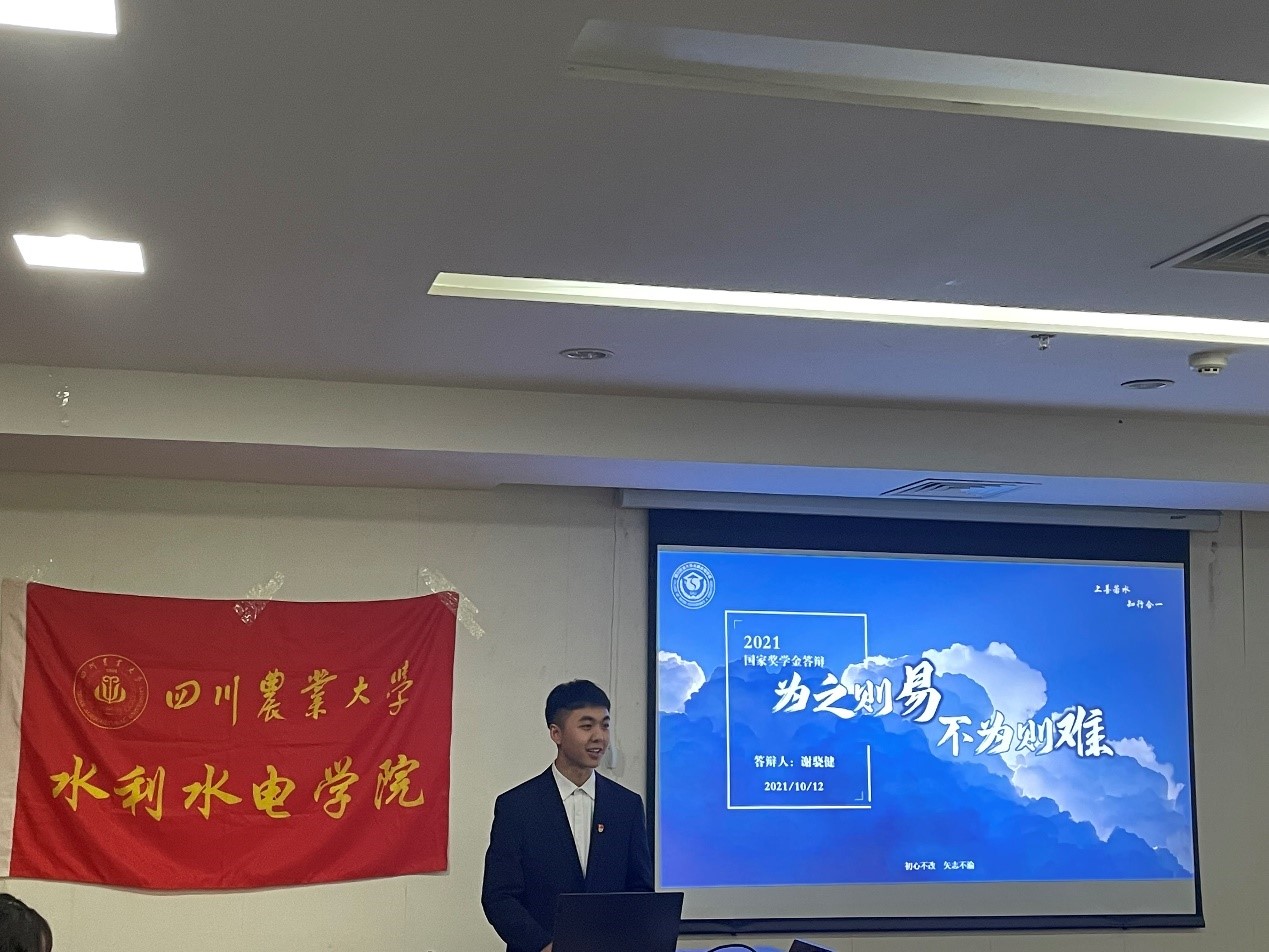 10月12日上午,水利水电学院在雅安校区综合楼314举行了2020-2021年度“国家奖学金”评选答辩会。学院院长曹迎、党委书记侯莉、副院长胡建、各系室主任、办公室主任担任评委。20级和21级各小班代表观摩学习。