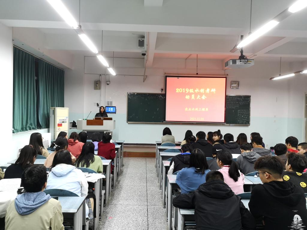 为提高2019级学生的考研积极性,认清考研形势,坚定考研信念和确定考研目标。农业水利工程专业于2021年11月4日在10教A-410召开2019级学生考研动员大会。会议由农业水利工程专业系主任张志亮教授主持,王莹副教授,邓玉、张莹、刘俐等老师以及农业水利工程专业2019级全体本科生参加会议。