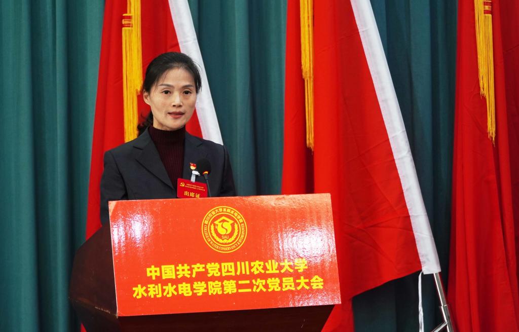 会上,水利水电学院党委书记侯莉同志代表中共四川农业大学水利水电学院第一届委员会以“夯基固本、务实有为,奋力开启水利水电学院高质量发展新征程”为题向大会作党委工作报告。报告从党务思政工作、基层组织建设工作、意识形态管理和宣传教育工作、党风廉政建设、师资队伍建设、2138cc太阳集团官网入口质量、专业建设发展、科研创新发展以及安全管理工作等方面全面总结并回顾了过去六年的工作。针对目前存在的不足,侯莉指出要做到正视存在差距、找准问题症结、采取有力措施、认真加以解决,要做到“四个坚持”:坚持党建引领、坚持内涵发展、坚持改革创新、坚持紧紧依靠全院师生办学。未来五年,将聚焦硬化从严治党、深化人才强院、优化专业建设、强化科研团队、细化对外合作,全力推进学院高质量内涵发展,奋力开启学院高质量发展新征程。