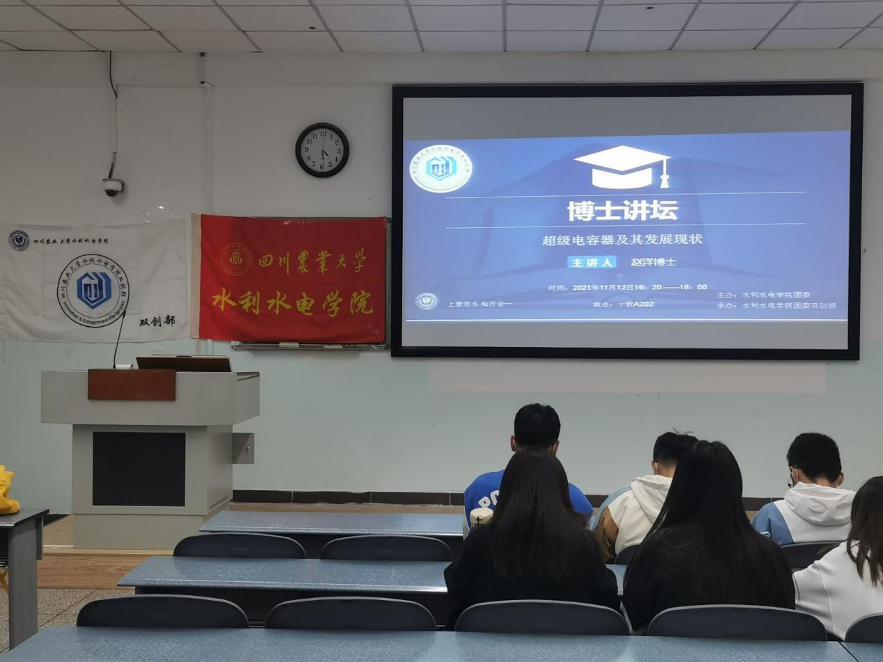 为了响应国家大力发展新能源的号召,提高大家的实践能力以及科研素养,提升我院学生的整体科研学术水平,11月12日,由水利水电学院团委主办、学院双创部承办的博士讲坛系列活动以线上会议的方式顺利举行。本次宣讲会以“超级电容器及其发展现状”为题,学院博士赵洋应邀出席活动与同学们交流分享、答疑解惑。