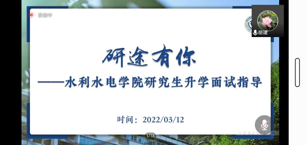 在主讲人与观众的互动中,会议被推向高潮。来自水电、水利、能动三个专业的主讲人就专业差异着重讲解了专业特色问题。水电专业的杨茜如强调水力学、水工建筑物、水电站等专业课的学习,要注重基本功的打造。针对同学们比较关心的复试调剂的问题,彭桥慧以自身经历向大家详细讲解了校内调剂和院内调剂的区别与联系,并对院内调剂的各个流程进行了细致讲解。来自能动专业的董潇潇主要就面试临场表现给大家更多建议,他向大家展示了英文提问常见的问题,鼓励大家多从网上借鉴他人的考研经验,取其精华,去其糟粕。