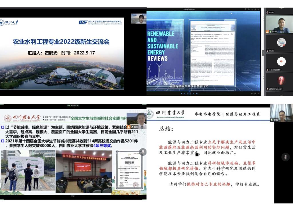 为帮助新同学更好的了解专业现状、课程体系、专业发展前沿以及就业前景,开拓学科视野,明确学习目标,做好学业规划,激发学习兴趣,增强专业信心,9月17日下午,农业水利工程专业、水利水电工程专业、能源与动力工程专业举行“专业面对面”主题线上教育活动。各专业优秀教师代表、校友及毕业生代表,各专业相关领导与水利水电学院2022级全体新生参加专业见面活动。