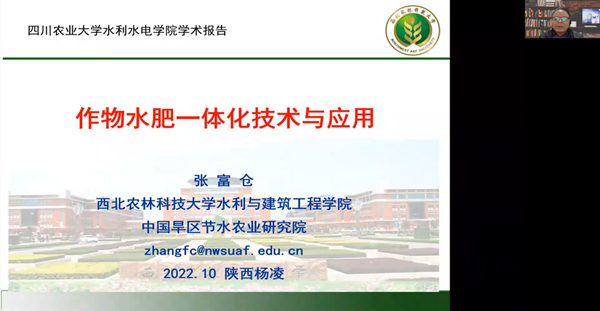 主讲人简介:张富仓,西北农林科技大学水利与建筑工程学院教授,博士生导师。研究方向为节水灌溉理论与技术,农田水肥调控及环境效应。兼任农业农村部作物高效用水重点实验室副主任,西北农林科技大学旱区节水农业研究院作物需水与调控研究所所长,中国农业工程学会农业水土工程专业委员会委员,国家水肥一体化产业联盟副理事长,中国农业节水和农村供水技术协会农艺分会副主任委员。一直从事节水灌溉理论与技术和作物水肥管理研究,主持国家“863” 计划项目、国家重点研发计划项目、国家自然科学基金项目等10余项。研究成果获省部级一等奖3项,二等奖3项,出版专著4部,获得国家专利10余项,指导博硕士研究生80余名,在国内外学术刊物发表研究论文350余篇,其中SCI、EI收录130余篇。