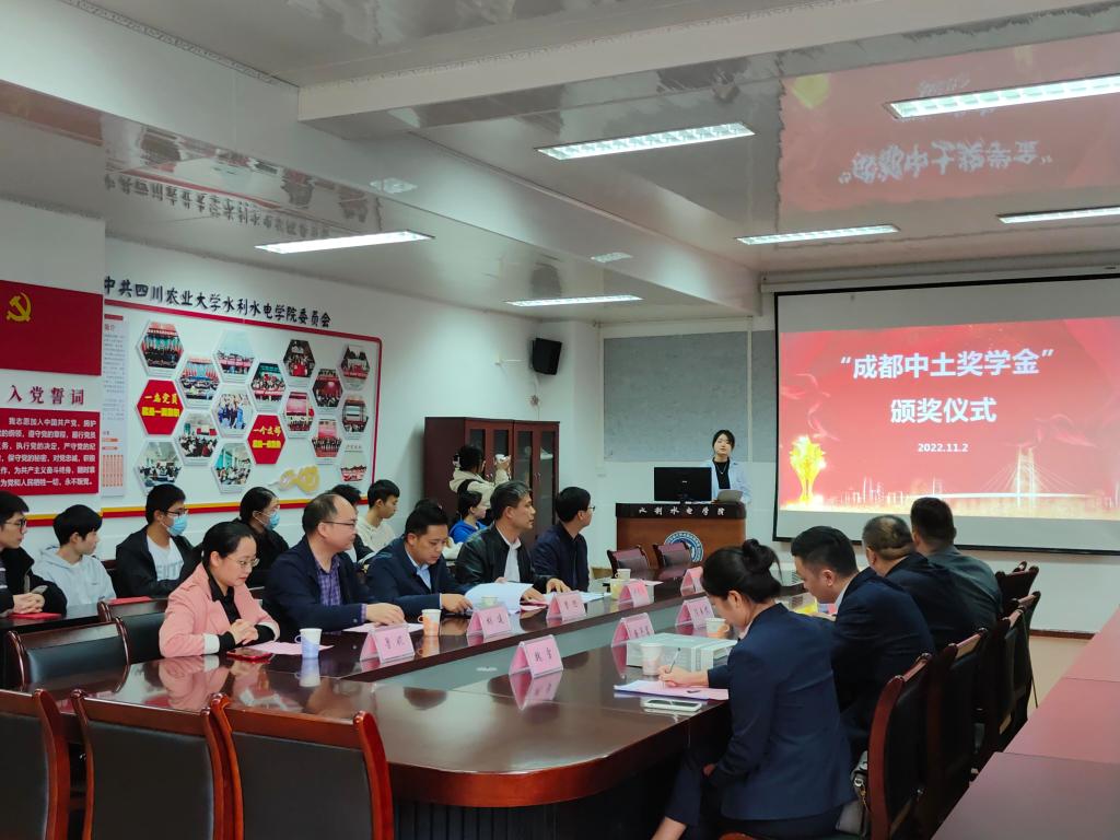 会上,曹迎代表学院向陈书农总工程师及成都中土工程设计有限公司一行人表示热烈欢迎,对成都中土工程设计有限公司捐资助学的社会情怀表示感谢。他表示,期待校企双方在更多领域加强合作,助推学院2138cc太阳集团官网入口和公司事业发展。胡建宣读表彰决定,捐资方代表柴子茗等为获奖同学颁奖。能动2019级周泳利作为获奖代表发言,“饮水思源,作为水院学子,我们心怀川农大精神。团结拼搏,求实创新是我们对所有关心和帮助过我们的人的最好回报。”周泳利坚定地说道。