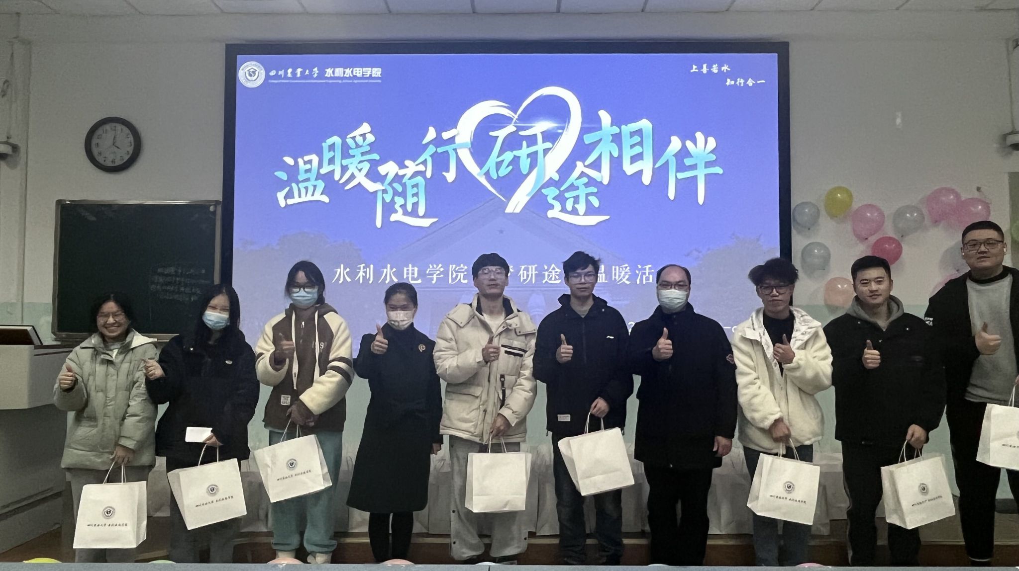 初冬时节,气温骤降。12月8日下午,学院 “温暖随行,研途相伴”慰问活动如期举行,学院党委书记侯莉、副院长胡建与全体辅导员为2023届考研毕业生送上慰问和祝福。“考研前程,一路平坦”的玩偶毛毯、“鸿运当头,福气满满”的德芙巧克力礼盒,“待苦尽甘来,换得山河岁月”的美好祝愿成为考研学子当日朋友圈的主角。与此同时,学院新媒体推出《微光燃尽,“研”途必达》推文,用照片与文字记录同学们一路的汗水与努力,并附上考研期间的一些注意事项,包括调整心态,健康作息,劳逸结合适度放松等等。推文的结尾写满了学弟学妹对他们的鼓舞与支持,鼓励他们考研途中不孤单,这个冬天不太冷。