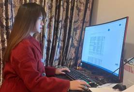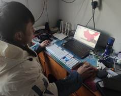 图为成员进行数据分析、剪辑视频 摄影者:兰晓青