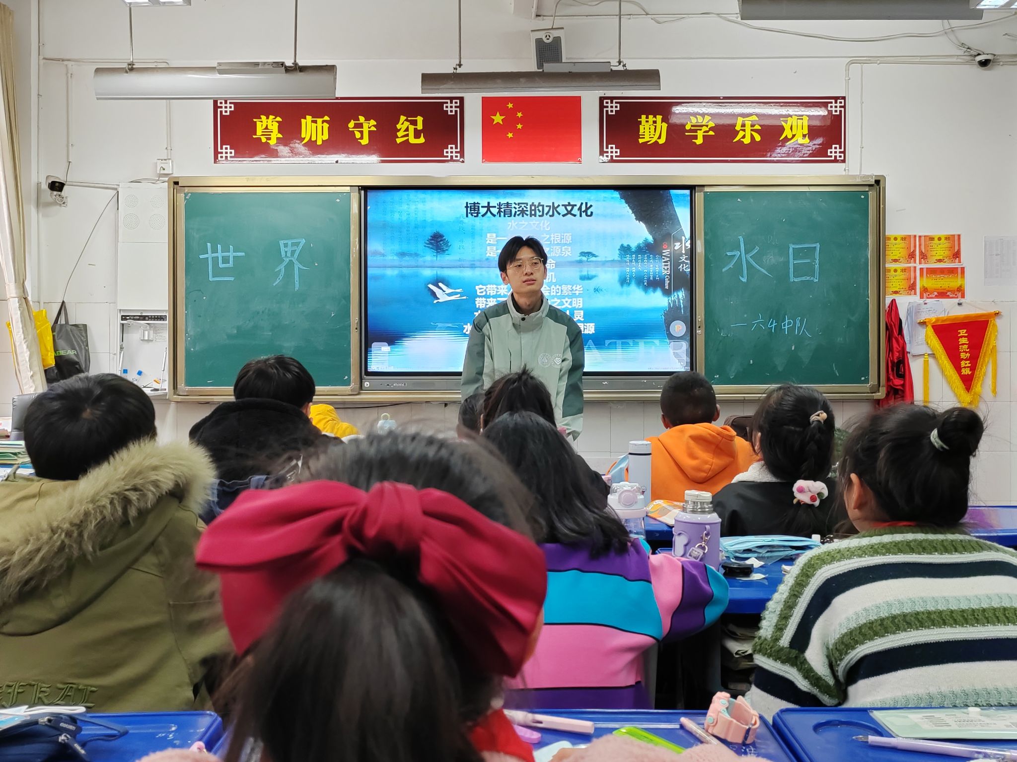 研支团以“水知识水环保水科学水文化”四个内容向雷波县城关小学的同学们讲述中国近代水利发展史、水利工程,让孩子们了解水利工程所承载的世代中国水利人的坚强不屈、奋勇向前的红色精神和民族精神。同步开展的周公山镇小学支教行则以科普世界水日的由来与相关知识为主要内容,引导小朋友们节水用水,珍惜水资源。