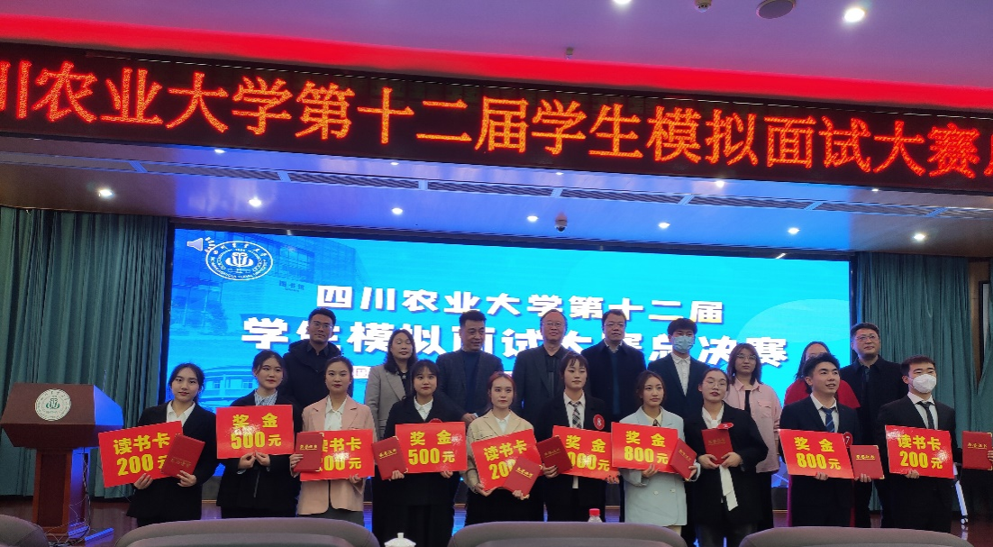 3月22日下午,由招生就业处主办的四川农业大学第十二届学生模拟面试大赛总决赛暨“智汇巴蜀”成渝地区双城经济圈第四届大学生模拟求职招聘大赛校内选拔赛在雅安校区十教一楼报告厅举行。来自三校区的10位选手从各学院初赛、校区复赛的近300名选手中层层选拔中脱颖而出,进入决赛。经过三个环节的激烈角逐,我院学子李奕杉斩获本届比赛三等奖。