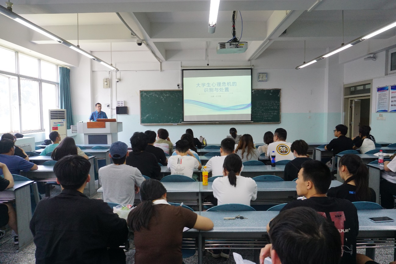 为在全院师生中普及心理健康知识,提升心理健康素养,培养心理委员心理危机的识别和处理意识,5月19日下午,学院于10教A410举办主题为“大学生心理危机的识别与处置”心理健康讲座。本次讲座由我校学生处心理健康办公室老师尹子臣主讲,学院党委办公室主任李建华、团委副书记杨丽萍以及全院各小班心理委员参加。