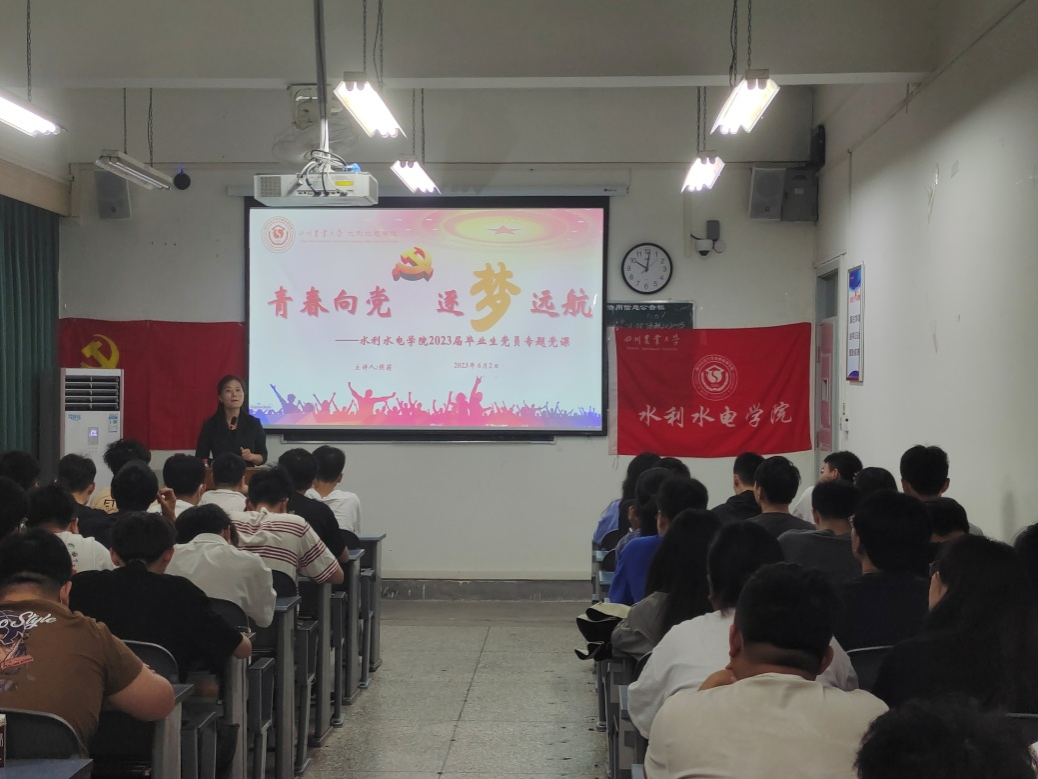 为切实加强2023届毕业生党员教育管理,坚定党员理想信念,提高党性修养,增强身份意识,争做爱党荣党、爱校荣校模范。6月2日上午,学院党委书记侯莉以“青春向党·逐梦远航”为题为全体毕业生党员讲授专题党课,与全体毕业生党员一起重温入党誓词。侯莉结合国产大飞机C919商业首航、神舟16号载人航天飞船发射升空引入“梦想”对于国家、民族、个人的重要引导价值。她谈到一个国家或民族的梦想,一旦付诸行动,就会成为一种神圣的国家意志、民族意志,就会成为不可抗拒的变革社会的伟大力量,并创造出让世界景仰和称颂的人间奇迹。侯莉勉励全体毕业生党员坚定理想信念、练就过硬本领、勇于创新创造、矢志艰苦奋斗、锤炼高尚品格,用中华民族伟大复兴的中国梦激励自己顽强奋斗、艰苦奋斗、不懈奋斗,用“青年梦”托起“中国梦”,让“中国梦”照亮“青年梦”。