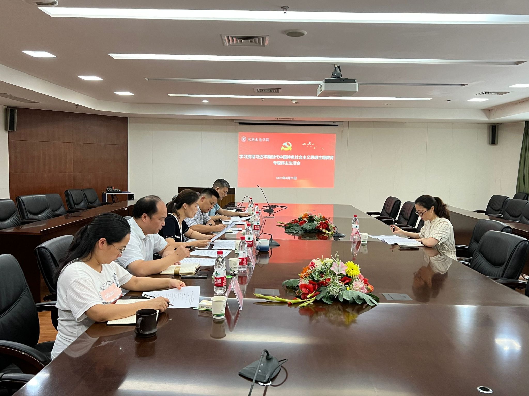 8月29日下午,学院学习贯彻习近平新时代中国特色社会主义思想主题教育专题民主生活会在综合楼314会议室召开。学校主题教育领导小组办公室成员、党政办公室副主任竹艳到会指导,党委书记侯莉,学院院长曹迎,党委副书记、副院长胡建参加会议,学院副院长卢修元、党委办公室主任李建华、行政办公室主任鲁妮列席会议。会议由侯莉主持。