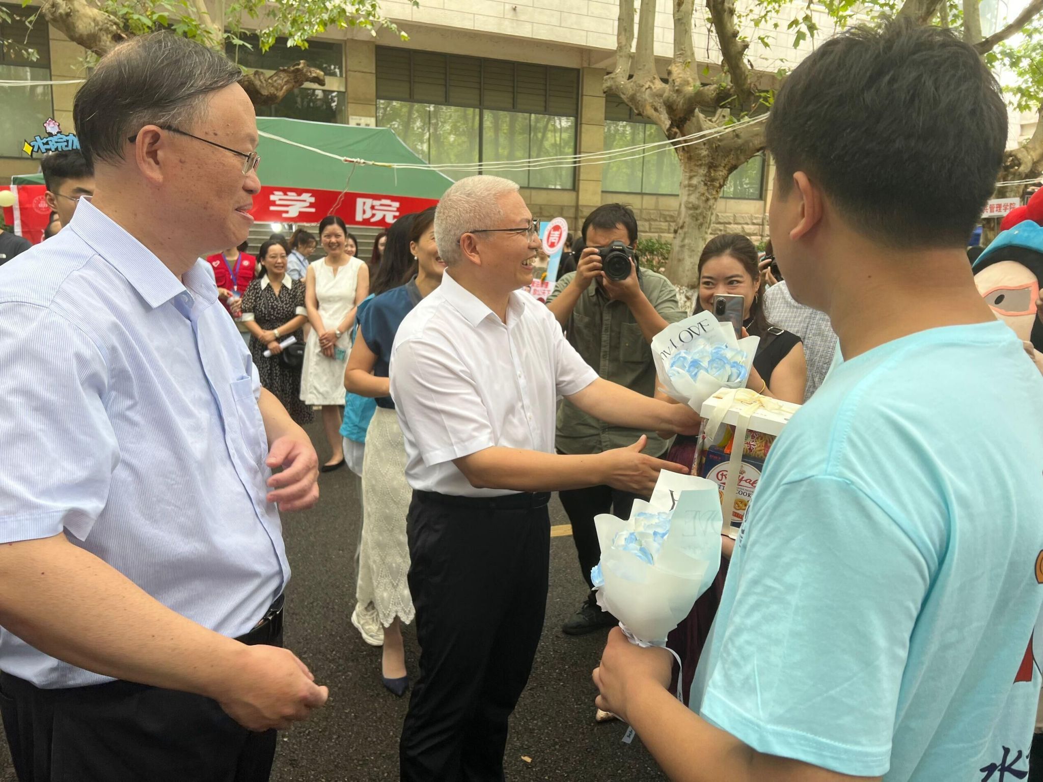 9月6日上午,校长吴德、校党委副书记张强,来到学院迎新报到点,关心和了解新生入学报到情况,表达对2023级新生和家长的欢迎和美好祝福,对志愿服务的工作人员表示关切和问候。学校相关职能部门负责人,学院院长曹迎,党委书记侯莉,副院长胡建、卢修元等陪同慰问。