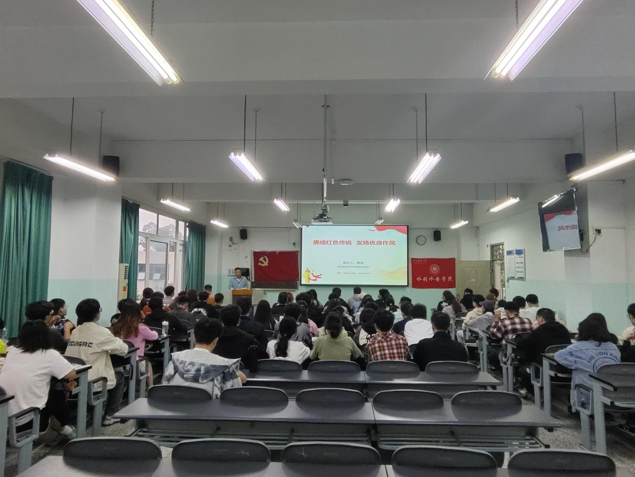 10月17日下午,院长曹迎以《赓续红色传统 发扬优良作风》为题为2023年秋季学期入党积极分子培训班全体学员讲授专题党课。
