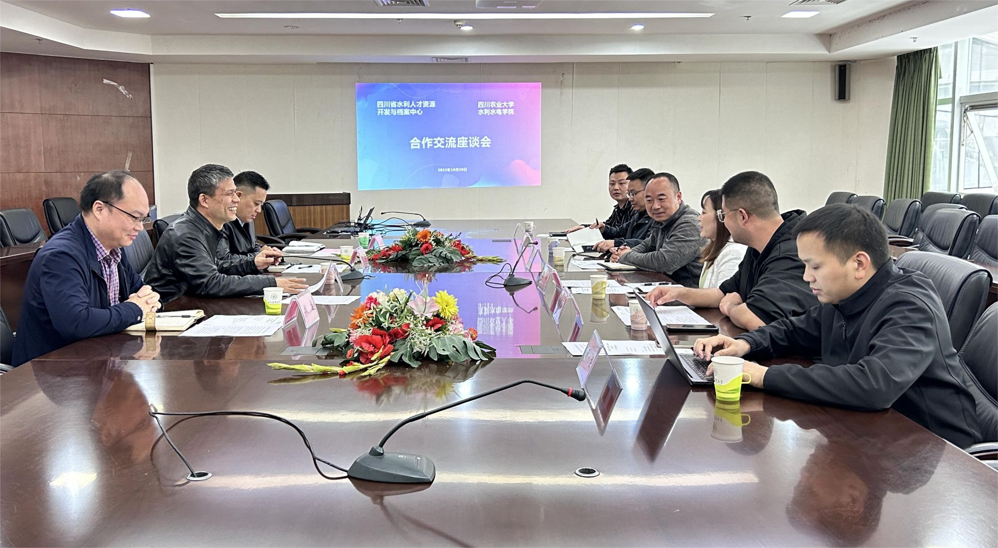 10月20日下午,四川省水利厅人才资源开发与档案中心副主任费刚及新瑞理想科技有限公司总经理杨志荣一行6人赴学院就水利行业人才培训事宜进行洽谈交流。学院院长曹迎、副院长胡建、卢修元参加座谈。会议由卢修元主持。
