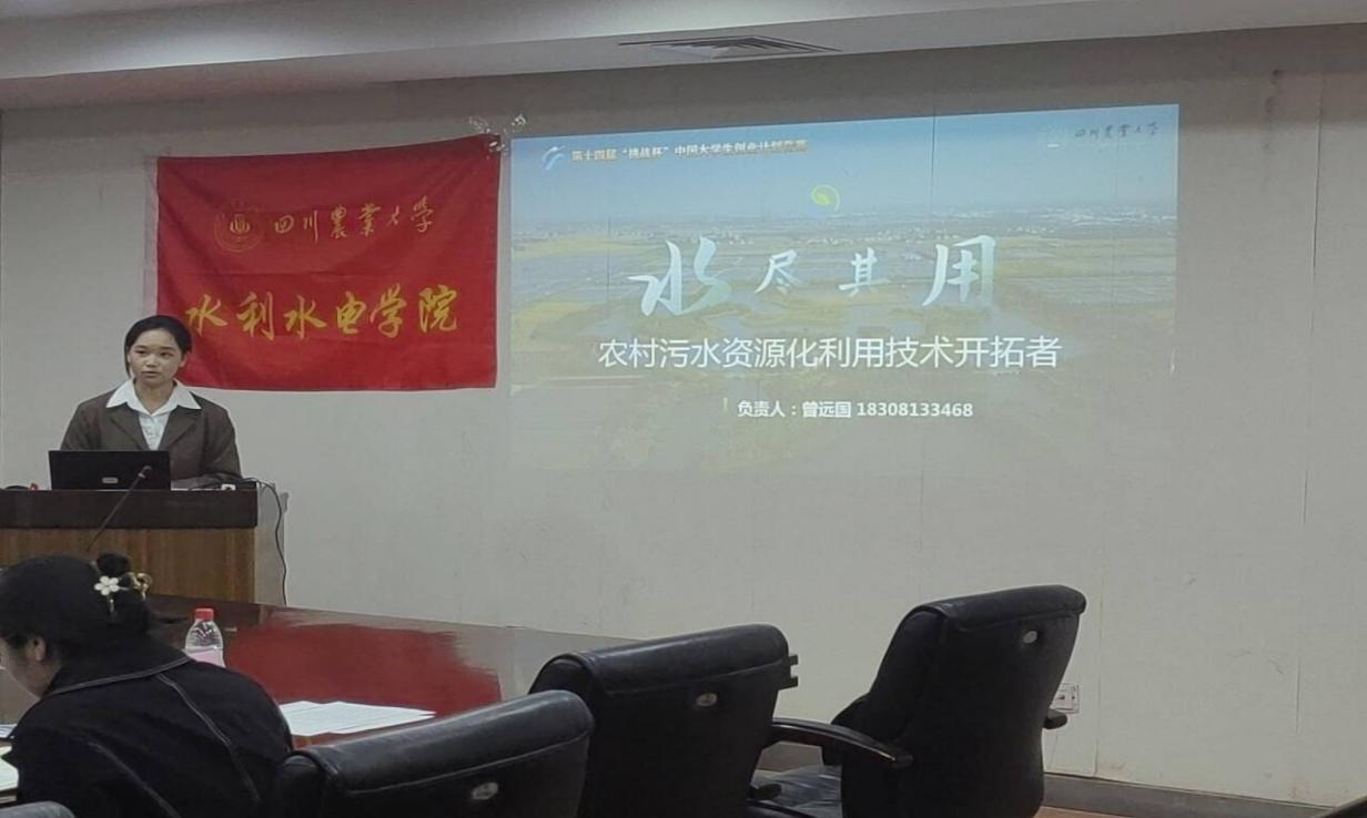 由王莹老师指导,曾远国、张靖潇、江欧等同学参加的项目“‘水’尽其用——农村污水资源化利用技术开拓者”获得一等奖,该项目主要为解决当前我国农村普遍存在污水排放分散和管控困难、污水处理运行成本高、污水去除效率低等问题,此前在第九届四川省国际“互联网+”大学生创新创业大赛中斩获省银,已授权或申请相关专利5项。