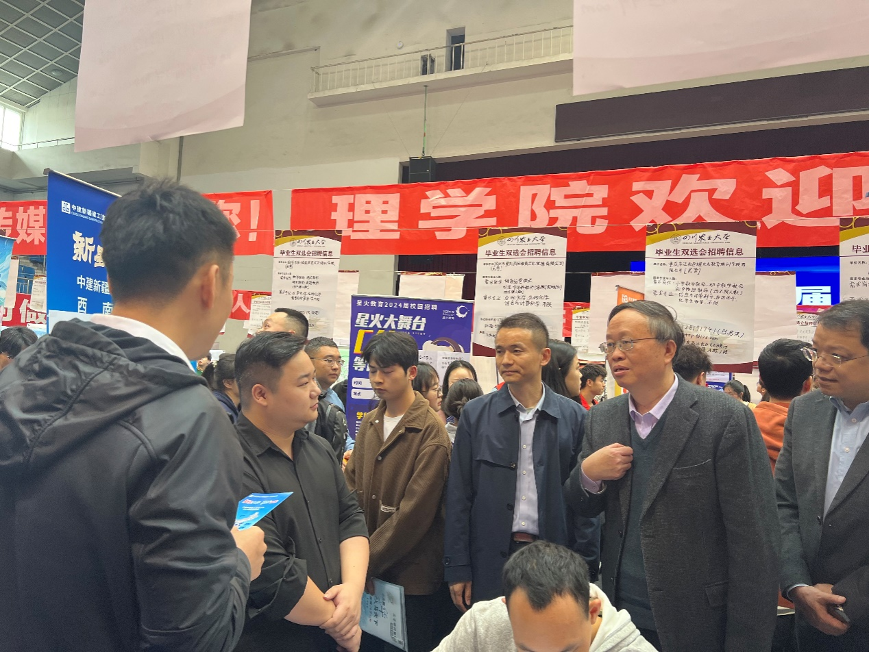 学校党委副书记张强,招生就业处处长廖鹏、副处长王文龙,学院党委书记马海及就业秘书、毕业班班主任莅临双选会现场,与招聘单位代表进行亲切交流,感谢用人单位对学院毕业生的青睐和对就业工作的支持,详细询问了各企业的发展方向和对人才的需求,了解各单位招聘要求、招聘岗位、毕业生求职方向以及毕业生简历投递情况等,希望用人单位能够与学院建立长期合作关系,给毕业生提供更多优质岗位。