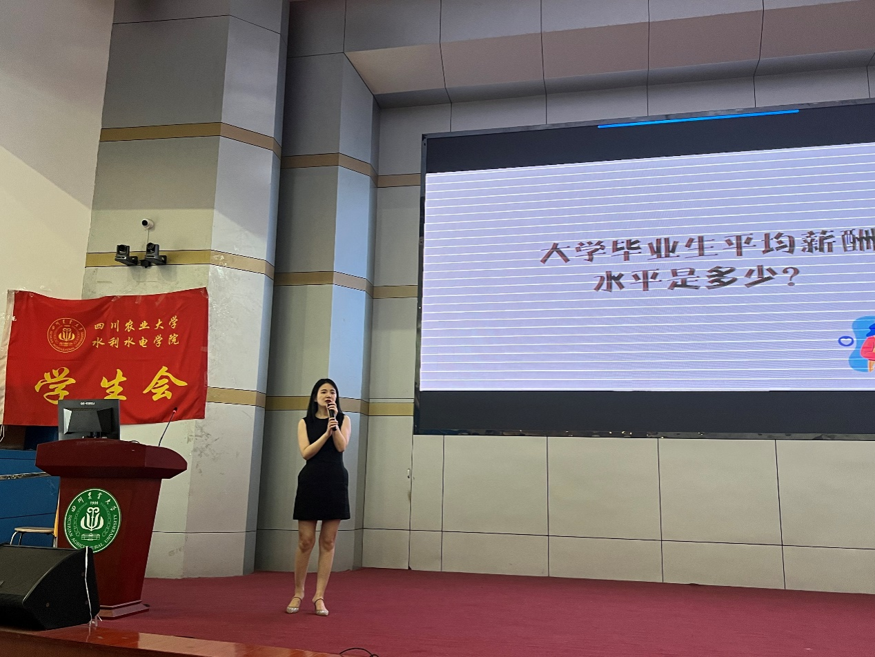 “你所认为的大学毕业生平均薪酬水平是多少?”讲座伊始,杨文静分别从就业薪酬、不同的就业方向、好的企业选择、取得好的职场成绩所具备的因素及本人职场成长故事五个方面出发,以“哪类人可以在职场中取得成绩”为切入点,通过亲身职场经验教训,总结了职场中做事和做人的标准。