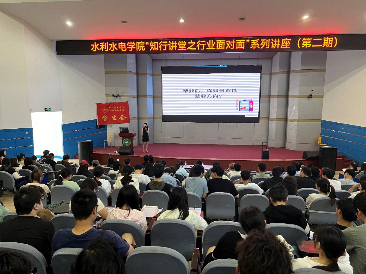 为帮助学院学生进一步认清就业形势,洞悉行业发展前景和企业现状,深度了解就业岗位,倾听职场成长故事,增强求职技能,提升就业能力,明晰职业目标,促进更加充分高质量就业,4月24日下午,学院“知行讲堂之行业面对面”系列讲座在逸夫楼小礼堂举行。中建七局西南建设有限责任公司安装事业部办公室主任、企业优秀讲师杨文静应邀作建筑行业就业交流,学院党委办主任李建华及300余名学生参加。