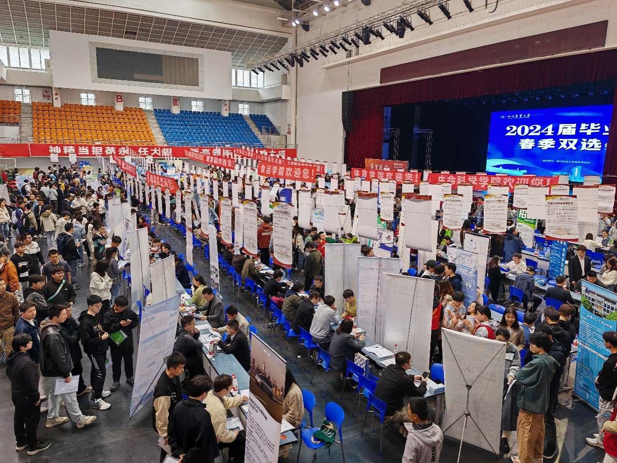 为切实解决毕业生就业问题,搭建毕业生与用人单位间的沟通平台,4月24日上午,学校于雅安校区体育馆开展第二场2024届毕业生春季双选会,共有108家用人单位参会,其中中国水利水电第五工程局有限公司、中国建筑第七工程局有限公司、新疆兵团勘测设计院(集团)有限责任公司等11家国有企业、世界500强企业、上市公司以及行业知名企业应学院邀请到校参与双选会活动,提供涵盖水利、水电、建筑、能源、电力等多个行业近100个就业岗位。
