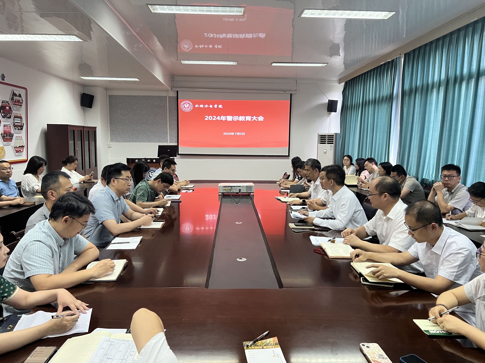 为进一步推进党纪学习教育走深走实,不断提升学院全体党员老师自觉遵规守纪,学院于7月5日上午在四教216召开了学院2024年警示教育大会,学院院长曹迎、党委书记马海、副院长胡建、卢修元及全体教职工党员参加大会,会议由马海主持。