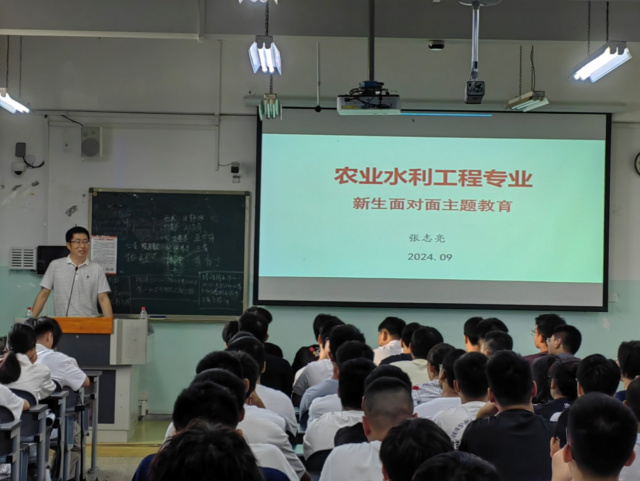 “本专业面向国家粮食安全生产和乡村振兴建设。”农业水利工程系主任张志亮教授提到:“德智体美劳全面发展是本专业的发展理念。”张志亮从师资力量、专业成就、专业建设以及优秀毕业生四方面为新生介绍专业概况。他强调:“本专业今年获得了本院第一个博士点,就业率与考研率稳步提升。”