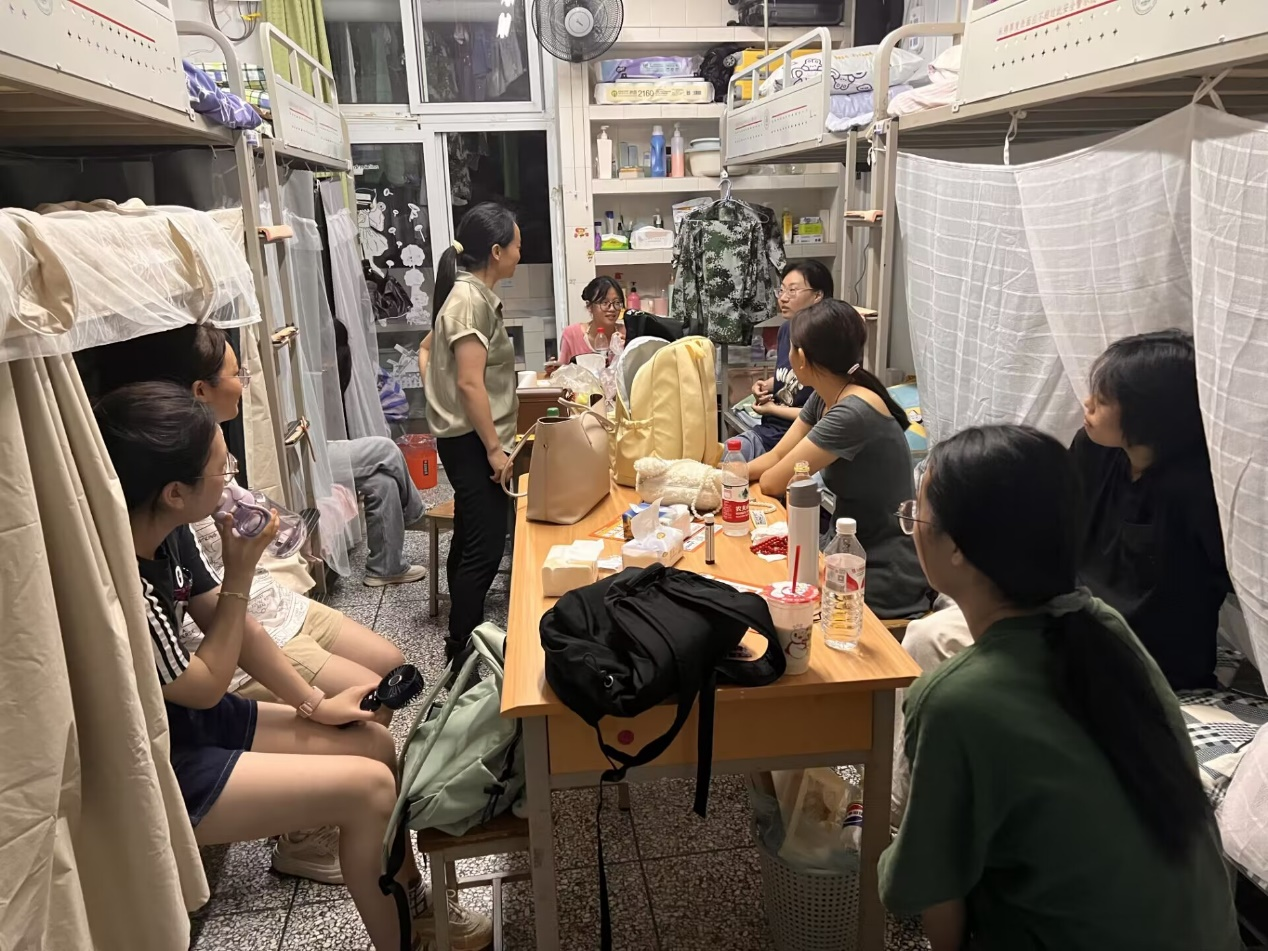 夜幕降临,班主任来到学生寝室,亲切探望24级新生小水滴。寝室中,班主任与学生亲切交谈,仔细询问学生的生活情况。从学业规划到人际关系处理,从生活习惯养成到心理健康关注,班主任们事无巨细地指导与关怀学生。同时,班主任还进一步强调了寝室安全、文明卫生等问题,提醒学生们遵守寝室规章制度,共同营造一个安全、舒适、和谐的居住环境。