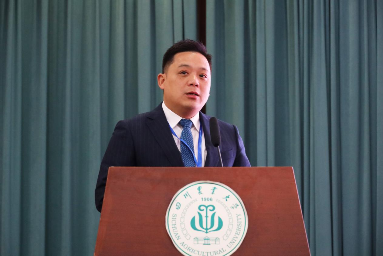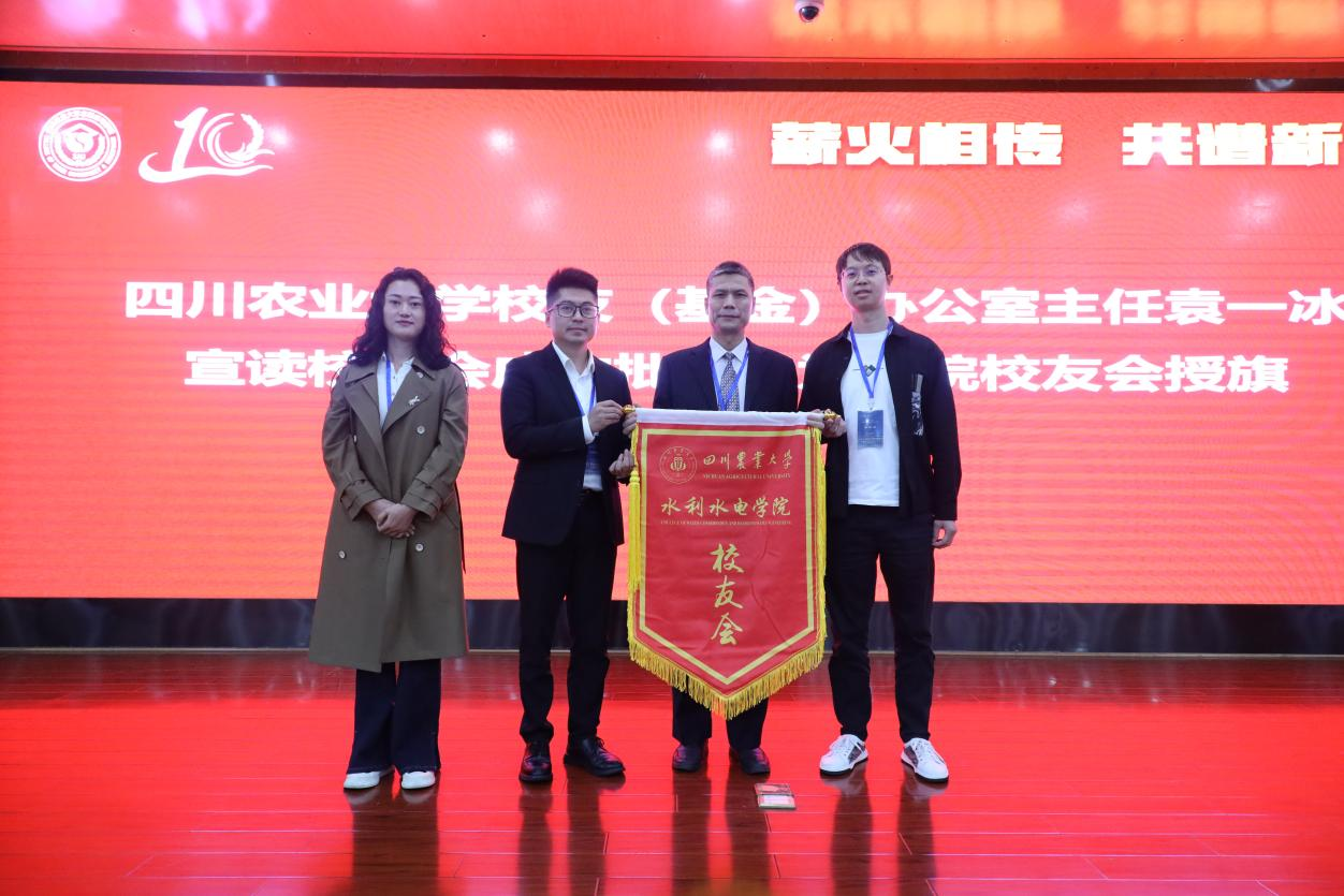 会上,四川农业大学校友(基金)办公室主任袁一冰宣读校友会成立批复,并为学院校友会授旗。