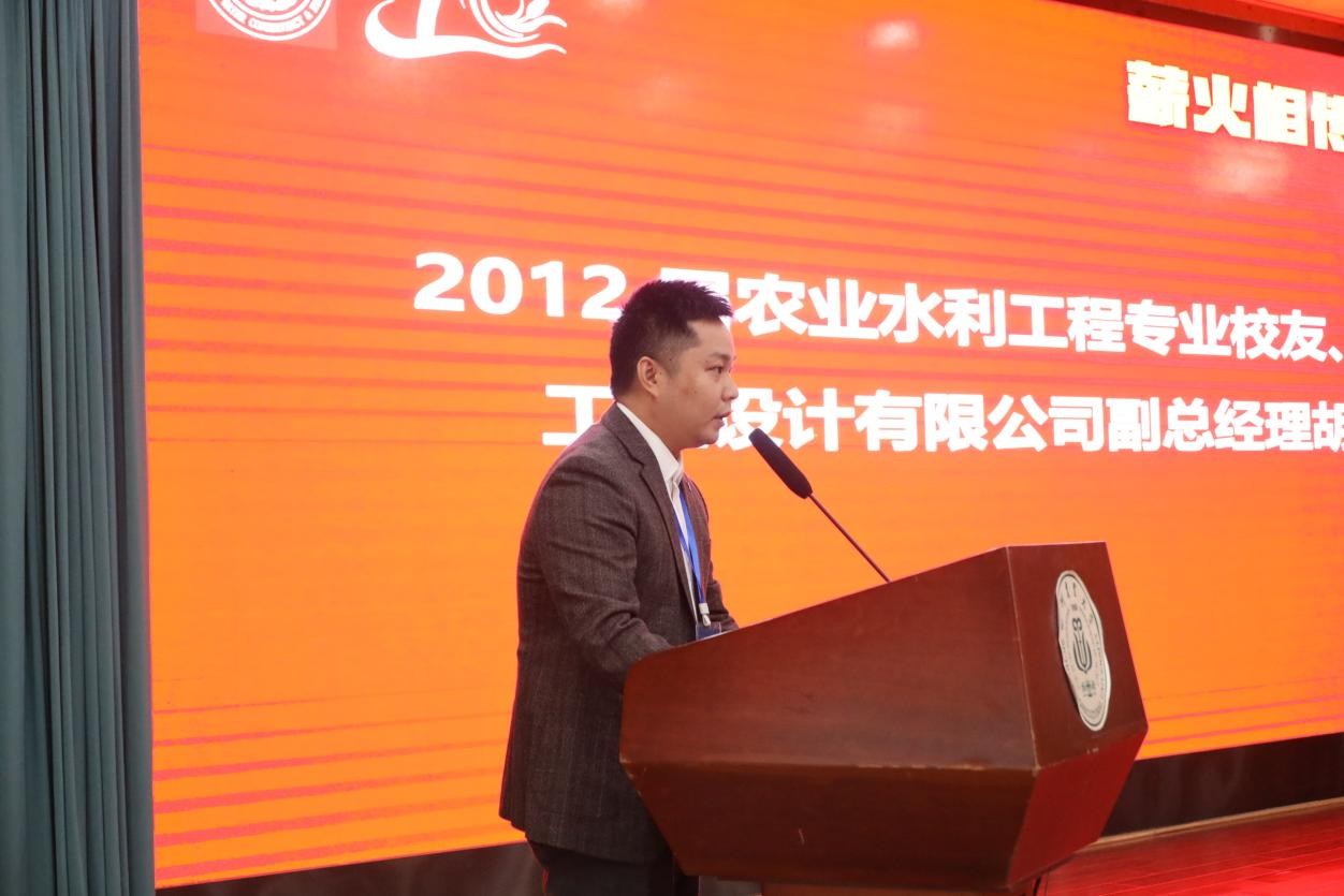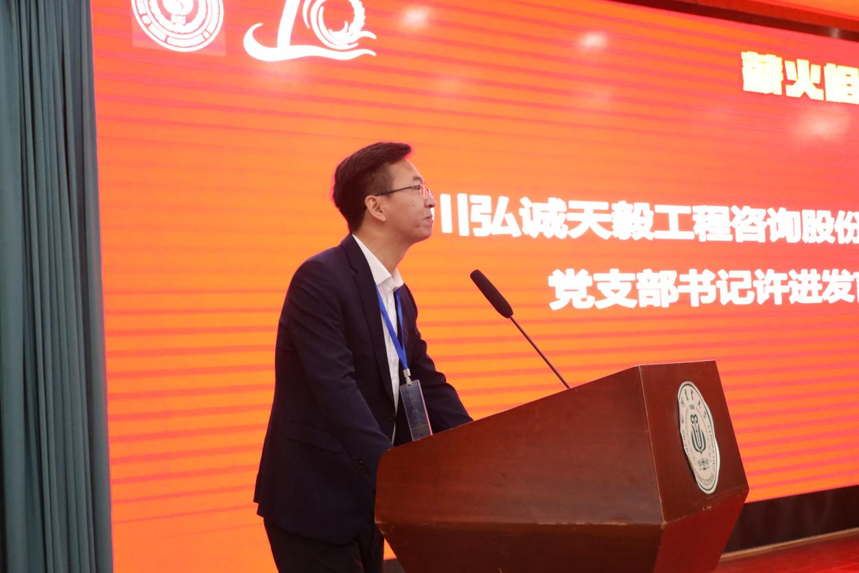 企业代表、四川弘诚天毅工程咨询股份有限公司党支部书记许进和2012届农业水利工程校友、成都中土工程设计有限公司副总经理胡然分别致辞。对建院十周年表示热烈祝贺和诚挚祝福,并表示将继续深化校企合作,共创校企更加辉煌的明天。