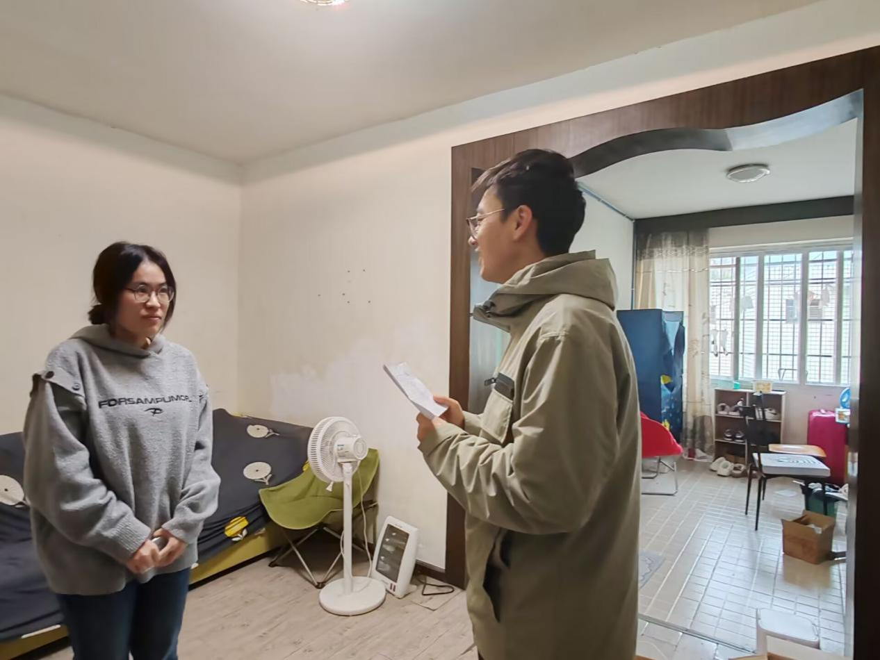 在走访过程中,学院领导老师实地考察了校外住宿学生的生活环境和居住条件,并就学生身心状态、学业发展情况以及日常生活需求等方面与学生进行了深入的交流,认真了解学生的实际情况。马海提醒同学们务必做到“四要”:一要养成良好的生活习惯,合理安排生活作息;二要强化安全意识,提升防范能力,高度重视防火、防盗、防煤气中毒等;三要注意清洁卫生,保持室内干净整洁;四要与老师、同学保持联系,及时反映问题或困难,定期汇报个人情况。