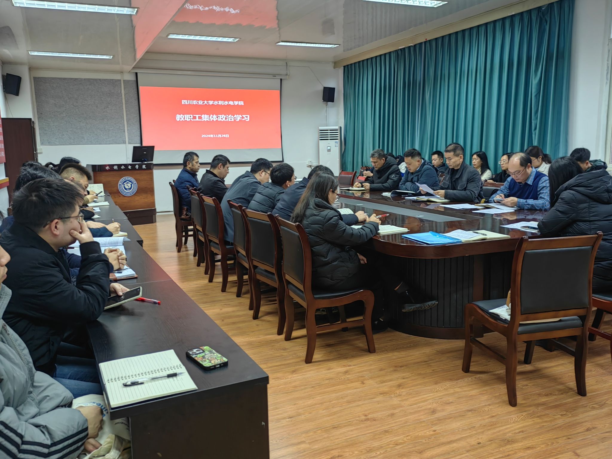 11月26日下午,学院组织全体教师进行集体政治学习。学习会议由学院党委书记马海主持,全体教师参加学习。