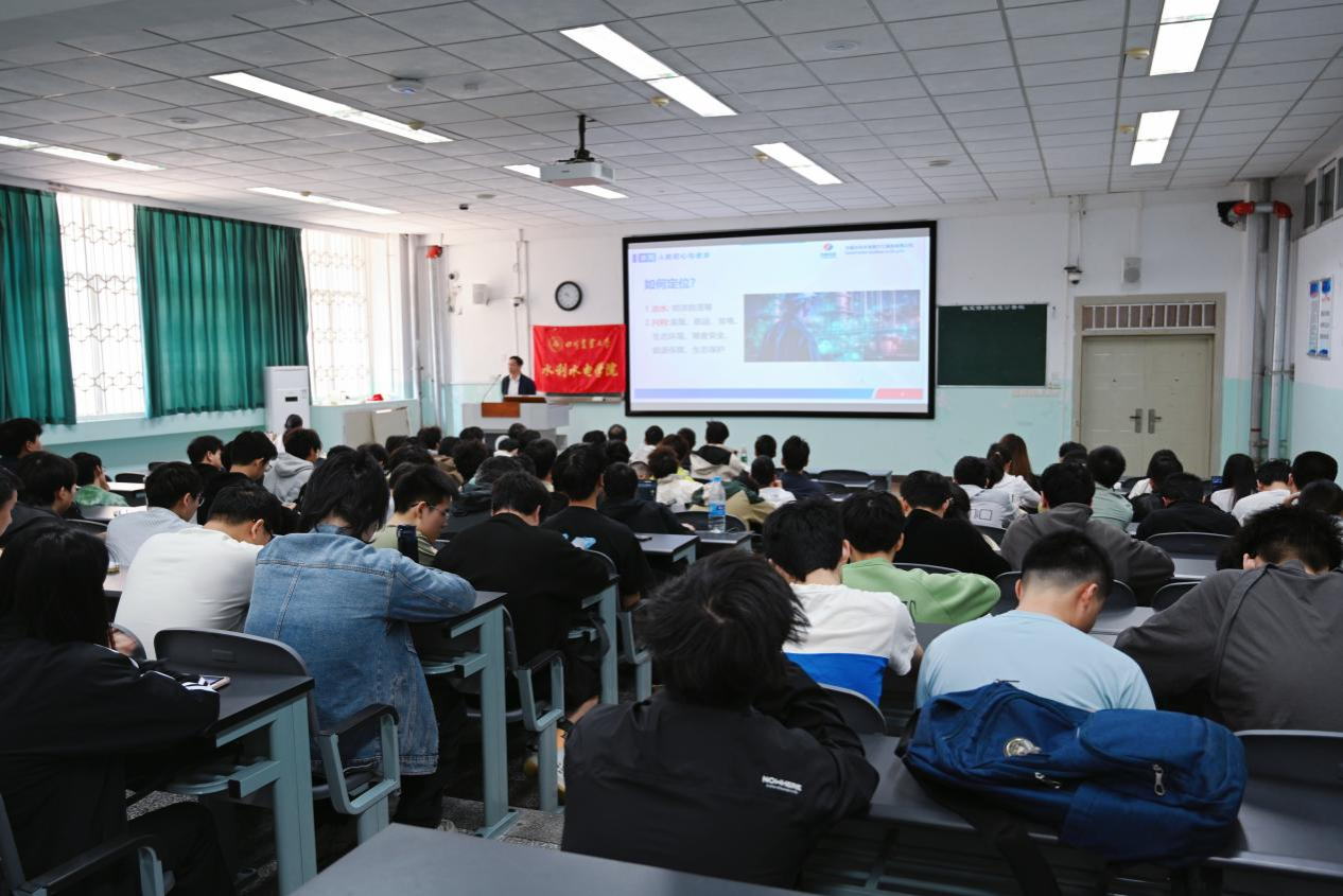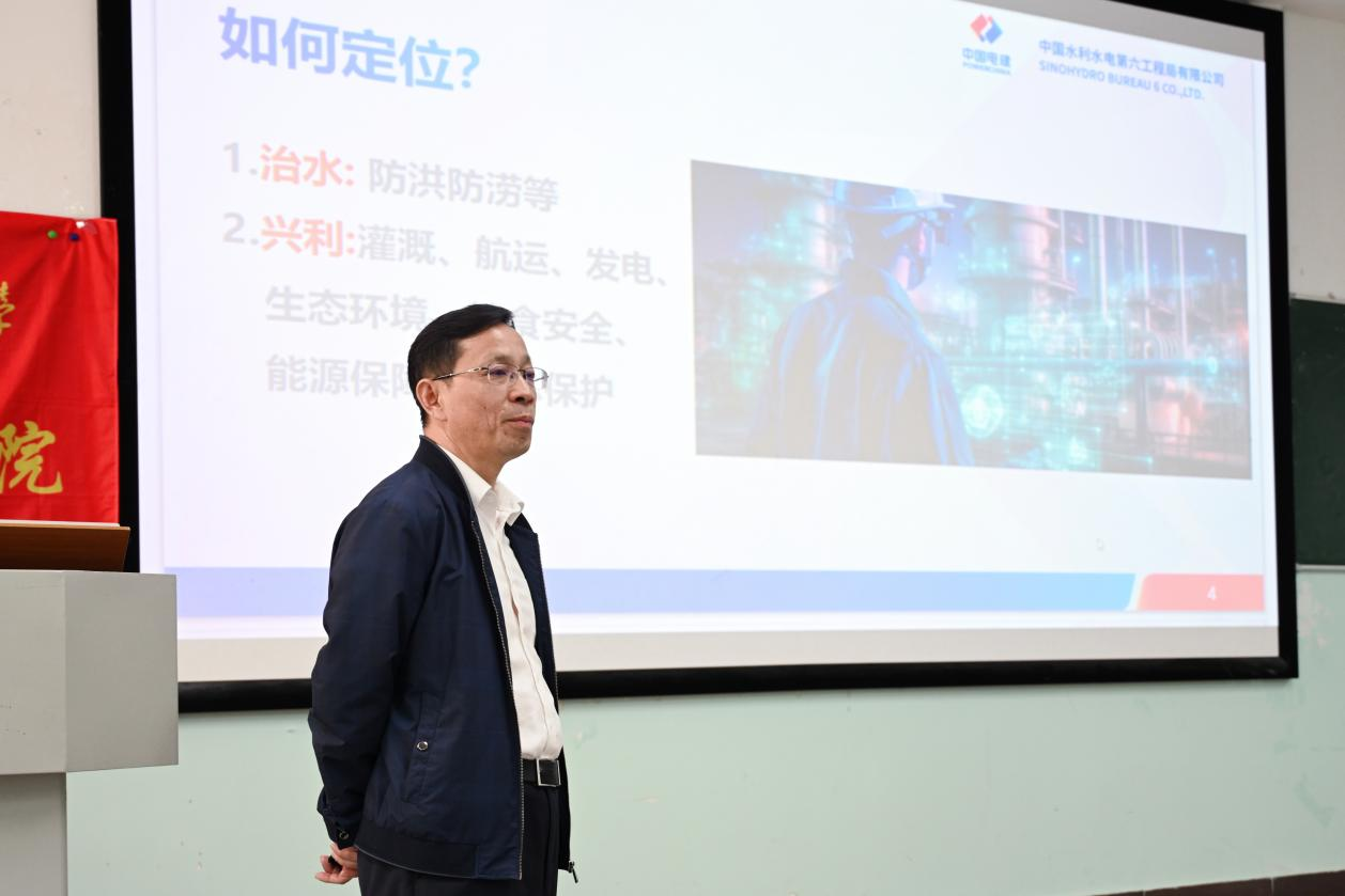叶明还介绍了水利水电行业前沿动态,包括国家水网建设、抽水蓄能、智慧水利、生态修复等政策与技术趋势。他指出,未来行业将面临复杂地质条件、极端天气、跨领域协同等挑战,但也充满数字化、绿色化的发展机遇。培训会后,中国水利水电第六工程局有限公司举行了专场宣讲和招聘,助力学院学生高质量充分就业。
