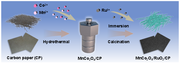 针对这一挑战,研究团队设计了一种MnCo2O4/RuO2异质结构。该催化剂通过巧妙的“电子缓冲”机制和“异质界面工程”的协同作用,成功打破Ru基催化剂的活性-稳定性权衡困境。实验结果和理论计算表明,具有多价特性的MnCo2O4作为电子缓冲层,可动态调控反应过程中的电子转移,有效抑制Ru的过度氧化,从而极大地提升了催化剂的稳定性。同时,异质界面诱导的电子重排与形成的丰富氧空位,共同增强了材料的本征催化活性,从而实现了“高活性”和“高稳定性”的同步兼顾。该项研究为开发高性能、低成本的酸性析氧催化剂提供了全新的设计思路,对绿色氢能产业发展具有重要意义。