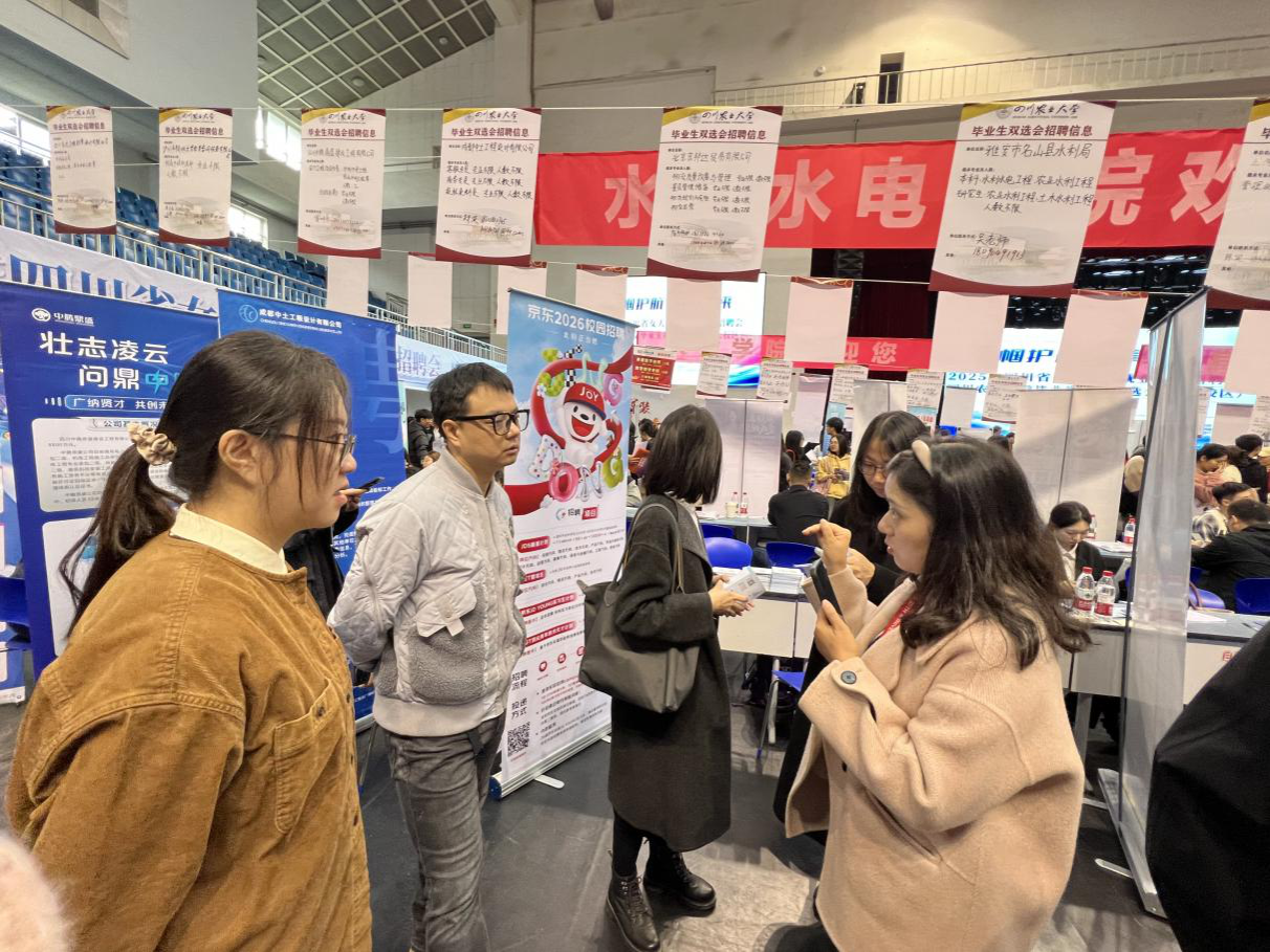 为进一步搭建毕业生与用人单位间的沟通平台,有效破解毕业生就业难题。10月28日,学校于雅安校区体育馆开展2026届毕业生秋季双选会,共有212家用人单位参会,其中中交四航局第四工程有限公司、中建八局第二建设有限公司、葛洲坝集团试验检测有限公司等21家国有企业、世界500强企业、上市公司以及行业知名企业应学院邀请到校参与双选会活动,提供涵盖水利、建筑、能源、电力等多个行业近百个就业岗位。