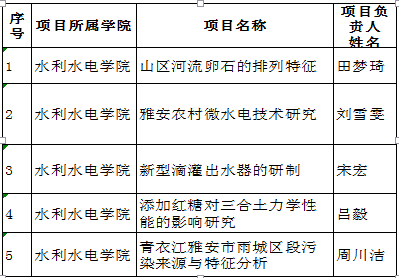 4月22日水电学院在老区1-209教室对8项自由申报的创新训练计划项目进行了答辩、评审,经投票选出5项上报学校(其余3项作为科研兴趣项目在老师指导下持续推进),现予公示。如有异议,请在22日至24日上午12:00点以前,以口头或电话方式向学院教学办反映(电话:2883120 )。