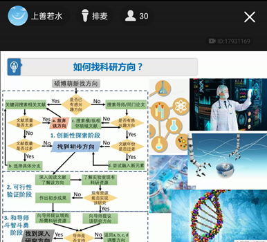 王莹老师运用引人深思的问题、有趣的图片、生动形象的案例为研究生新生打开了一扇探索科研的大门。她向同学们传授如何寻找科研方向,并对同学们的疑惑一一解答。一个个弹幕问题的背后,都是一颗颗好奇赤诚的心。
