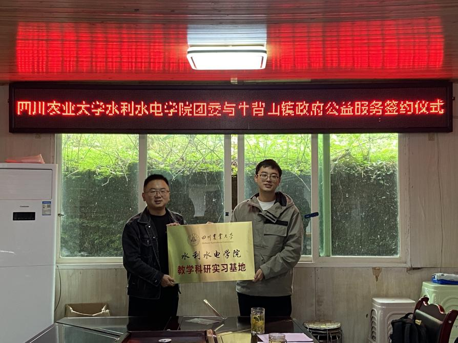 座谈会上,牛背山镇人大主席刘继强对水利水电学院团委、研究生会一行表示热烈欢迎,介绍了牛背山镇的历史沿革、旅游经济、土地状况和农业生产相关情况。罗磊介绍了四川农业大学、水利水电学院的基本概况,就校地产学研公益服务协议展开了讲解。双方就“优势互补、资源共享、互惠双贏、共同发展”达成共识,围绕牛背山镇土壤检测公益服务暨校地产学研实践项目,签订了为期二年的公益服务协议,并进行了学院教学科研实习单位授牌仪式授牌仪式。镇党委委员、组织委员刘鹏程代表牛背山镇党委、政府对学院表示感谢,他希望公益服务校地产学研计划正式启动后,双方在平等互惠互利的基础上,建立长期、稳定、紧密的校地产学研战略合作关系。