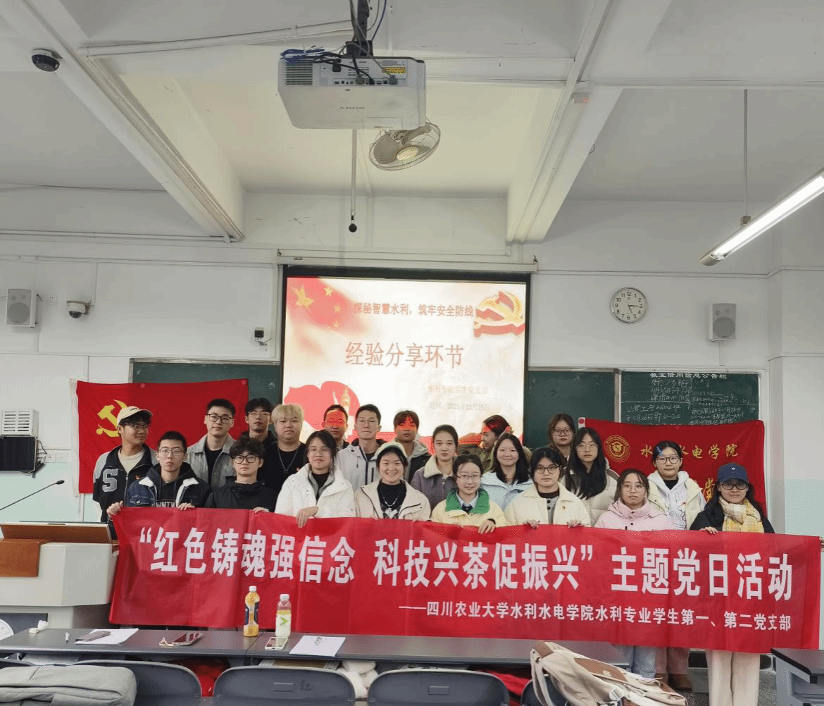 为认真贯彻落实党的二十届四中全会精神,进一步巩固学习实践活动成果。11月25日,水利水电学院水利专业学生第二党支部针对11月18日前往四川雅茶控股集团有限公司炽小茶公司党支部开展“红色铸魂强信念 科技兴茶促振兴”党建联建活动,开展“红色铸魂强信念,科技兴茶促振兴”主题党日活动,进行经验交流分享。本次党日活动在10教A417开展,水利专业学生党支部全体党员参加。