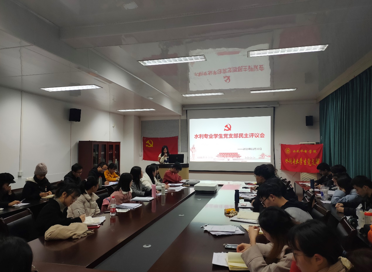为加强学生党员自我管理、相互监督,提高党性意识,发扬党的优良作风,水利水电学院水利专业学生党支部11月30日晚于四教216开展组织生活会与民主评议会议。支部全体党员参会,积极开展批评与自我批评,相互交流学习,以期在未来生活中扬长避短,不断地改造自我、提高自我、完善自我,充分发挥党员的先锋模范作用,以高标准严要求约束管理自身,取得进步。