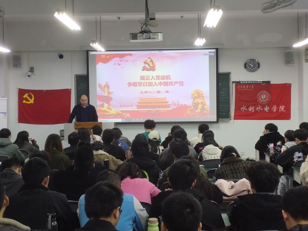 为了让学员们认识到正确入党动机的重要性,树立正确的入党动机,3月26日上午,学院党委副书记、纪委书记胡建在1-107教室为2022年春季学期入党积极分子培训班九十余名学员讲授“端正入党动机,争取早日加入中国共产党”的专题党课。